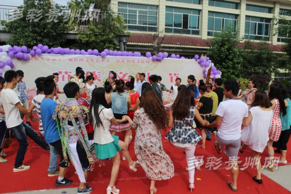 多彩贵州网讯 2015年5月29日下午,由共青团贵州民族大学委员会主办,贵州民族大学学生社团联合会承办,贵州省苗学会青年研究小组协办的贵州民族大学第二届民族风情文化周之“苗族文化节”在贵州民族大学六食堂广场举行。