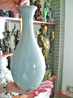 刘先生收藏的明代仿汝窑胆瓶刘先生收藏的明代釉里红高脚杯 ●村民刘先生家,就像清雅的博物馆 ●只要一有点钱他就全国跑,到各地古玩...