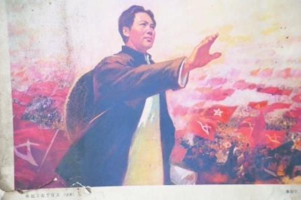 其中一张画报《唤起工农千百万》 南部县南隆镇望月村农民谢文祥近日在拆除一间旧房时,意外地发现了尘封30多年的80张珍贵的毛主...