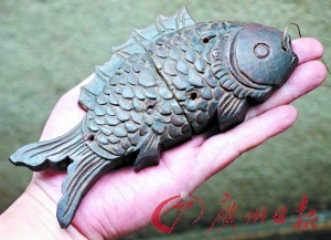 鱼形酸枝木质锁具 一件罕见的清代出品的鱼形酸枝木质锁具,最近在香港被广州西关知名收藏爱好者邹永生发现购回。昨天下午,锁的新主...