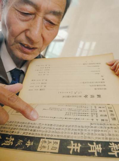 在五四运动九十周年纪念日的前夕,沈阳市民,今年74岁的阎恩发大爷,向记者展示了15年前,他在北京的一个旧物市场淘来的“宝贝”——《...