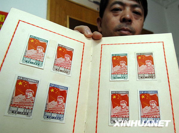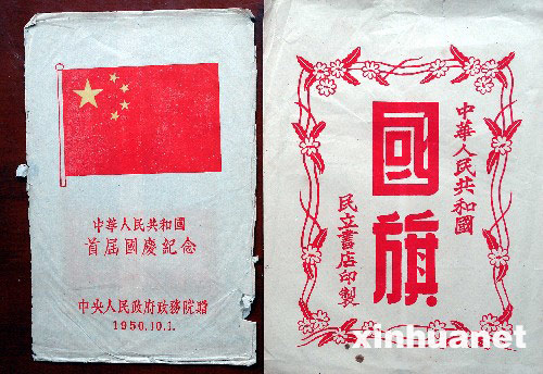 1950年10月1日参加建国1周年庆典的人,都得到了这样一份由中央人民政府政务院赠送的“礼品袋”(右图),内有纪念证一张(左图),以及微型国...