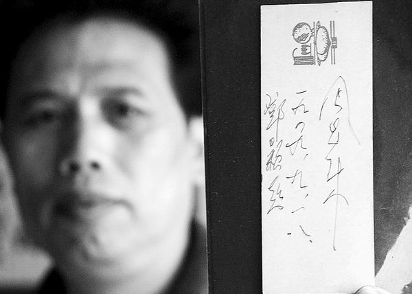 周恩来的亲笔签名成了杨先生一家的传家宝。陈烨 代泽均/摄 “新中国成立60周年了,这张有周恩来总理和邓颖超同志共同签名的小书签,...
