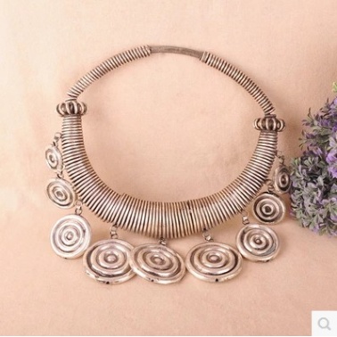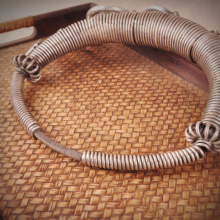 苗银项圈,首饰类都是手工制作、烧制,亲拿到的货有黑色的地方并不是脏的,而是故意用蜡做旧的,而且苗银饰品放久以后会因为氧化作用导致泛黄、泛黑等变色,并不是质量问题