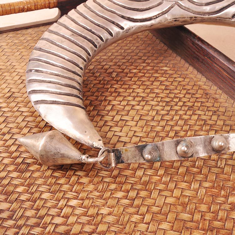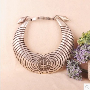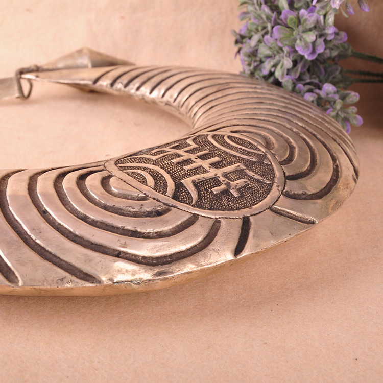 苗银项圈,首饰类都是手工制作、烧制,亲拿到的货有黑色的地方并不是脏的,而是故意用蜡做旧的,而且苗银饰品放久以后会因为氧化作用导致泛黄、泛黑等变色,并不是质量问题