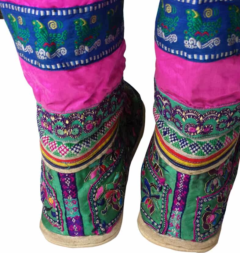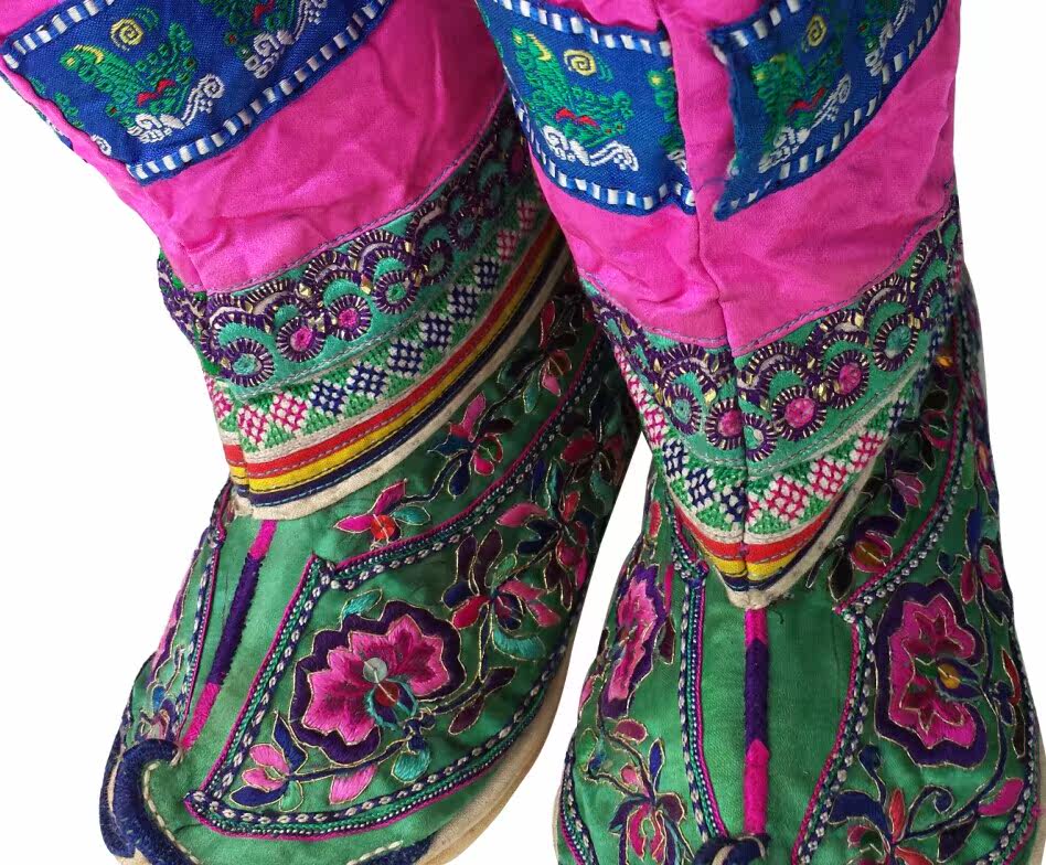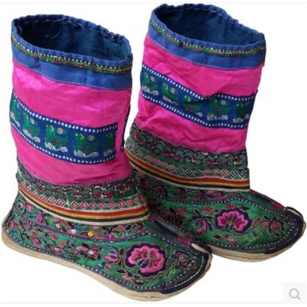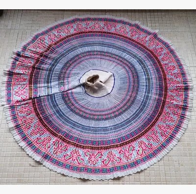 苗绣以五色彩线织成,图形主要是规则的若干基本几何图形组成,花草图案极少。几何图案的基本图形多为方形、棱形、螺形、十字形、之字形等。苗族妇女刺绣不打底稿,也不必先描画草图,全凭自己天生的悟性,娴熟的技艺和非凡的记忆力,数着底布上的经纬线挑绣。她们凭借丰富的想象力,布局谋篇,将一个个单独的局部的图形巧妙组合,形成一个丰满的绣品,达到和谐完美的境地,美观大方。 苗绣最讲究对称美、充实美和艳丽美。所谓对称美,就是上下左右不论图形、色彩、空间,都完全要求对称;所谓充实美,就是整个绣品不留空白;所谓艳丽美,就是用色大胆,大红大绿,鲜亮夺目。