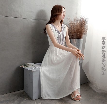 • 商品名称:2015夏无袖棉麻连衣裙女民族风薄款连衣裙刺绣长裙女