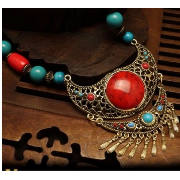• 商品名称:茶马云南民族风特色项链藏族饰品月亮吊坠夸张舞蹈配饰挂件