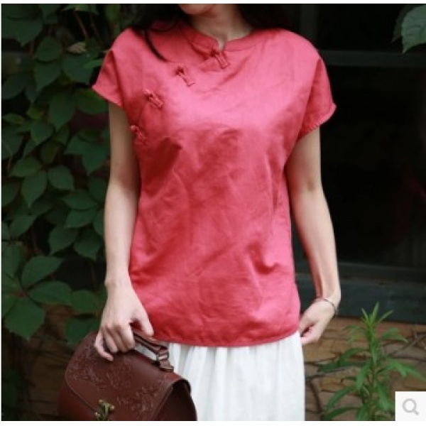 • 商品名称:夏装民国风上衣女中式改良短款亚麻衬衣民族风衬衫