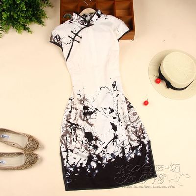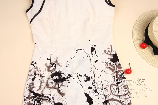 • 商品名称:黑白水墨旗袍民族风改良女中式短袖夏装棉麻唐装