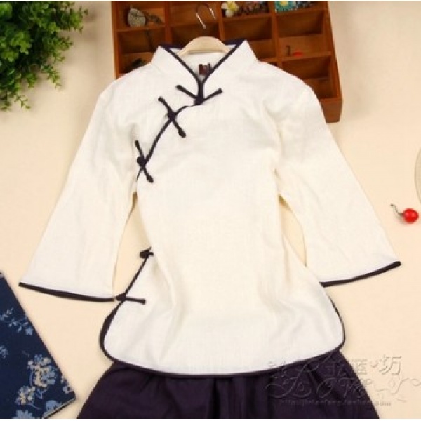• 商品名称:中式民族风女装 汉服改良中袖棉麻旗袍上衣
