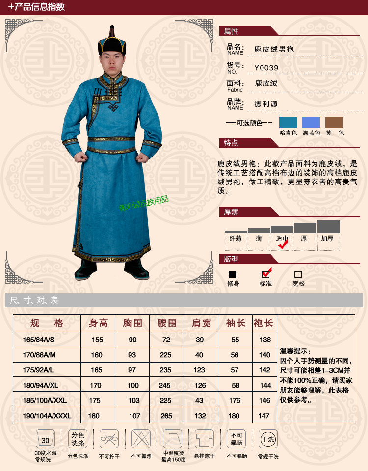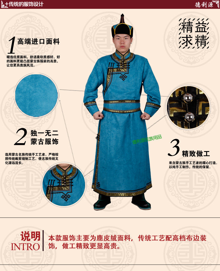 • 商品名称:鹿皮绒 男蒙古袍 Y0039民族舞蹈服装演出服