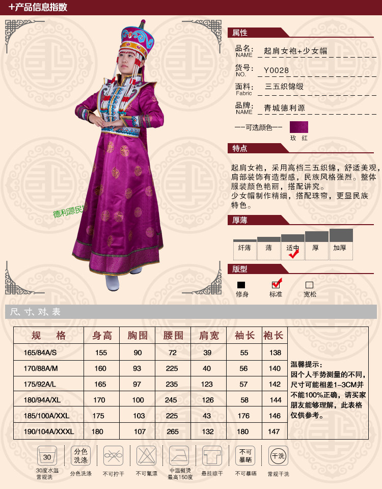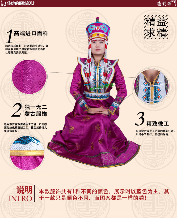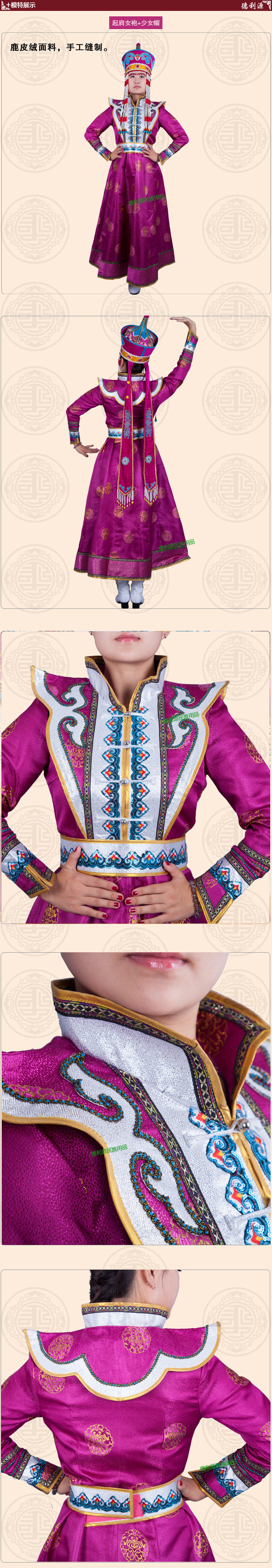 • 商品名称:蒙古族服饰 女士 起肩长裙女袍 Y0028 蒙古演出服