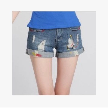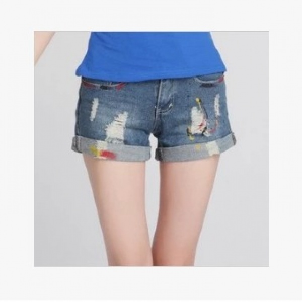 • 商品名称:撞色破洞做旧牛仔布短裤热裤浅色中腰棉