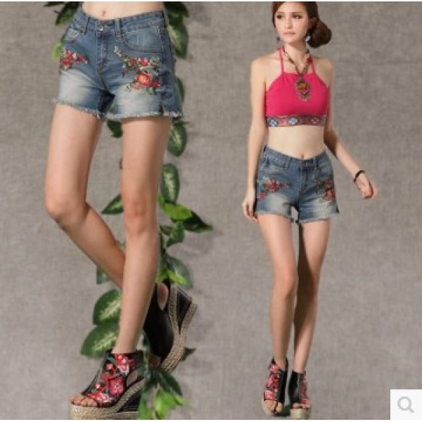 • 商品名称:夏季牛仔短裤女刺绣包边热裤显瘦