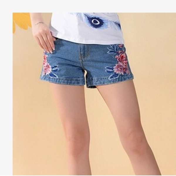 • 商品名称:民族风复古特色绣花棉弹力牛仔短裤 热裤