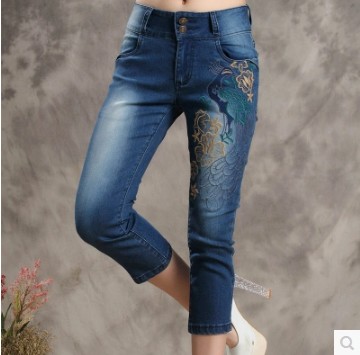 • 商品名称:春夏最新特价打折民族风刺绣绣花牛仔中裤七分裤