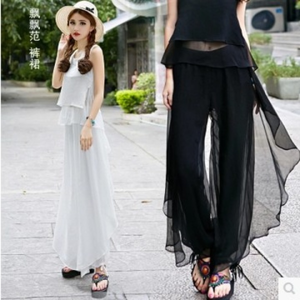 • 商品名称:民族风裤裙超仙飘逸雪纺薄莎宽松长裤子