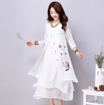 • 商品名称:复古棉麻纯色中长款系带薄款印花披肩外套开衫