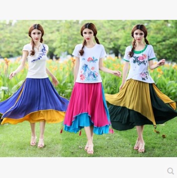 • 商品名称:夏装特色 新款女民族绣花大摆棉质半身裙