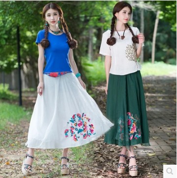 • 商品名称:民族风 刺绣棉质 绣花半身裙演出裙长裙