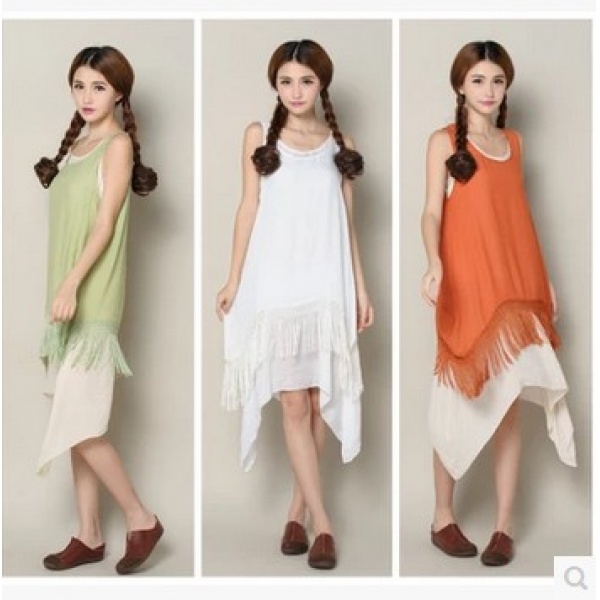 • 商品名称:复古棉麻假两件不规则无袖连衣裙长裙