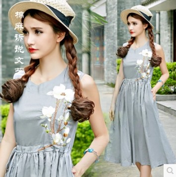 • 商品名称:文艺风连衣裙民族风复古绣花圆领无袖