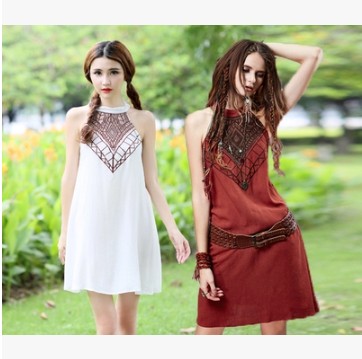 • 商品名称:夏装新款女民族风 刺绣花A型背心 连衣裙