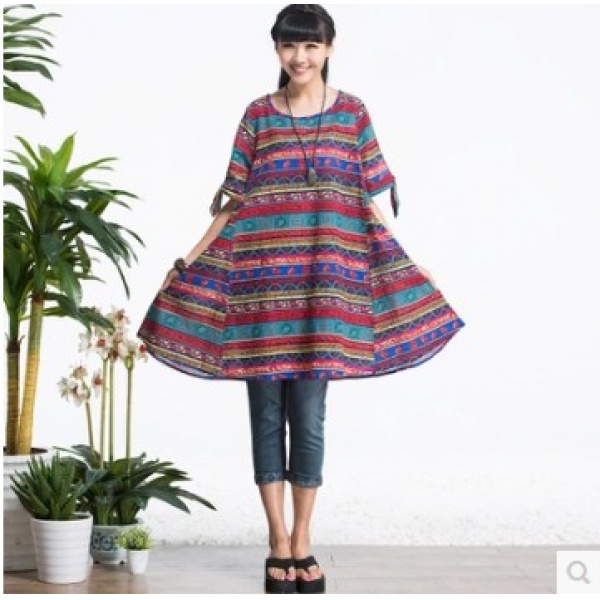 • 商品名称:复古文艺范袖口系蝴蝶结 超大摆 胖MM 棉麻