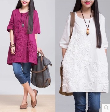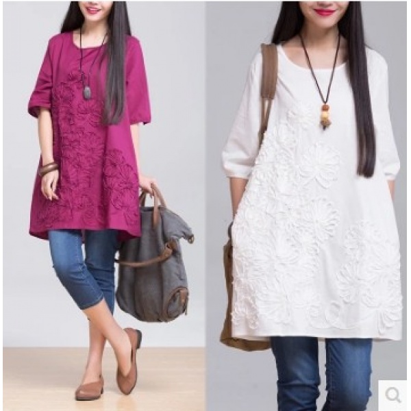 • 商品名称:连衣裙大码女装文艺范小清新宽松绣花短袖棉麻连衣裙