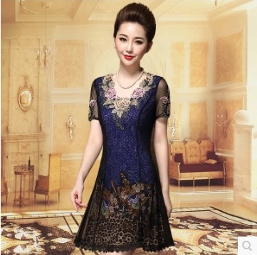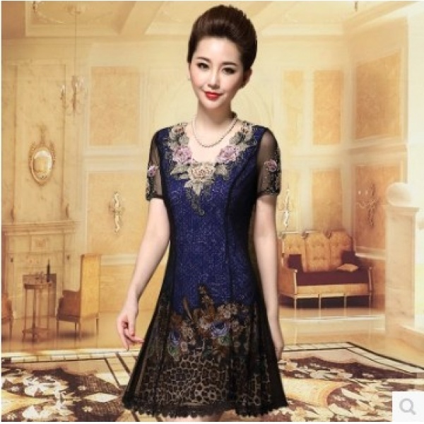 • 商品名称:中老年气质短袖修身显瘦妈妈装连衣裙雪纺蕾丝