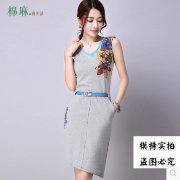 • 商品名称:文艺中长款纯棉印花连衣裙修身显瘦女送腰带