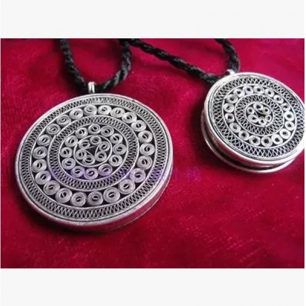 材料:做旧苗银+手工绣片