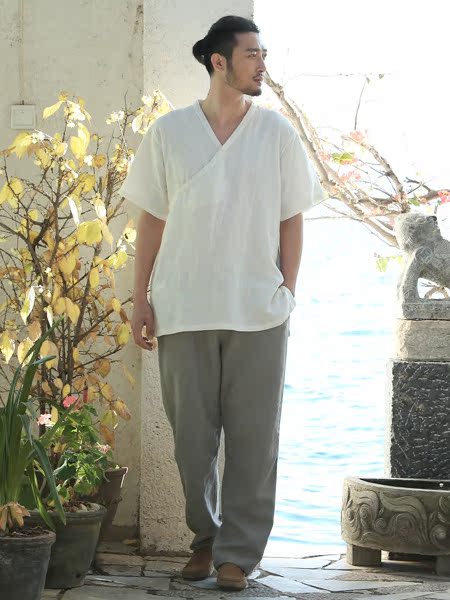 • 商品名称:中国风亚麻男装中式立领休闲民族服装汉服禅修
