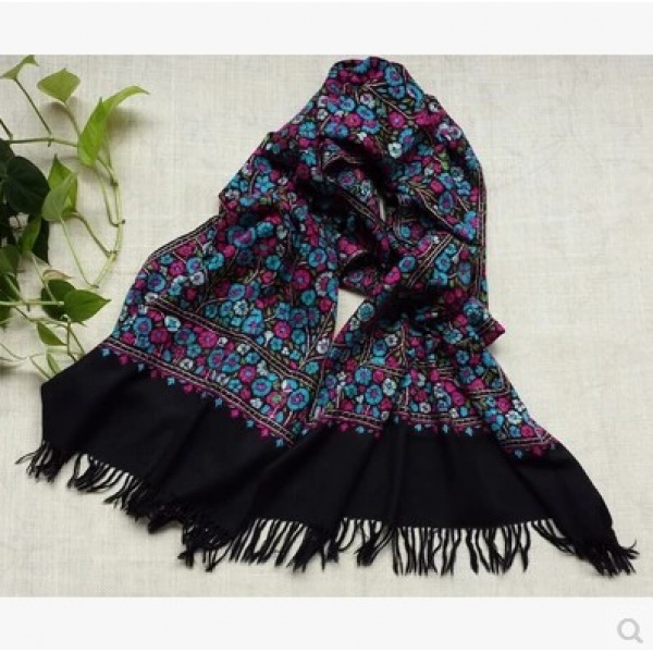 • 商品名称:纯手工刺绣披肩纯羊毛绣花民族风特色围巾