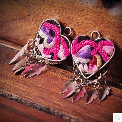 材料:做旧苗银+手工绣片
