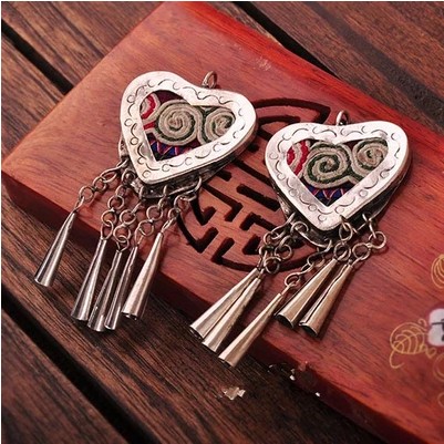 • 商品名称:手工老苗刺绣片布艺耳环苗银吊穗三角形流苏