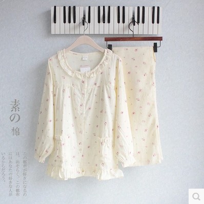 • 商品名称:纯棉双层纱布睡衣外贸日单薄款家居服套装长袖长裤