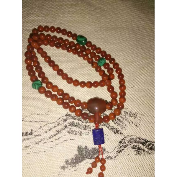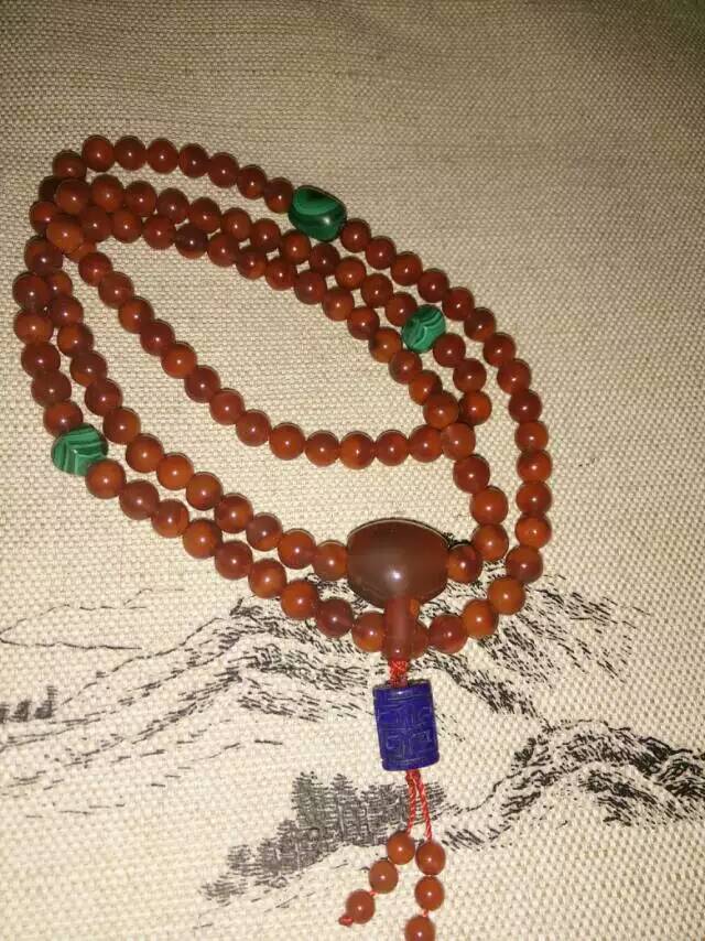 九口满色满肉火焰纹0.75南红配孔雀石顶珠.腰珠,青金背云108佛珠,喜欢的赶紧结缘