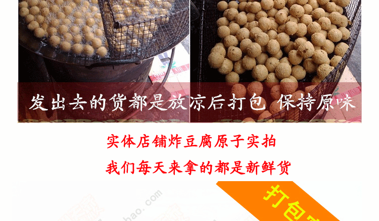 各位大大好!500克一份,圆子大小适中,绝无偷工减料,保证一份40个以上。配做好的沾水,当天炸当天发,保证新鲜,我们选用真空包装,免费泡沫箱加冰袋保鲜进行发货!保持豆腐圆子的原本味道。打开即食,真空时会挤压变扁,脆度也有一定影响。亲可打开整理一下恢复圆状,当然自己放油里炸一下更好。