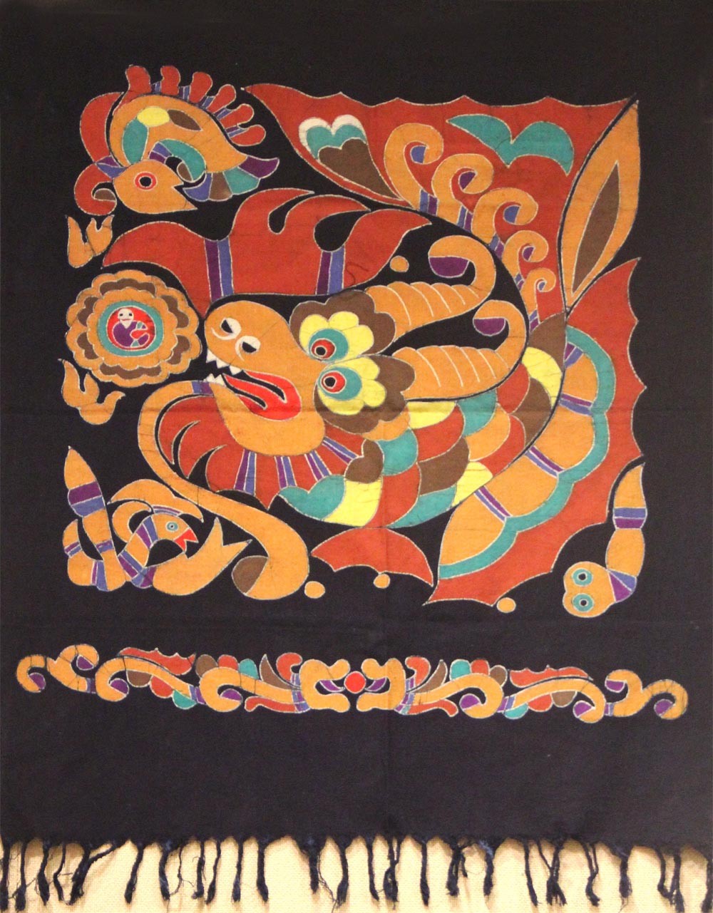 关于掉色:掉色(特别是蓝色的部分)是蜡染的特性,所以掉色是在所难免的事情,不过洗掉了浮色的蜡染越发清丽,这也是好蜡染的特性。一句话,好蜡染,不怕洗!!!