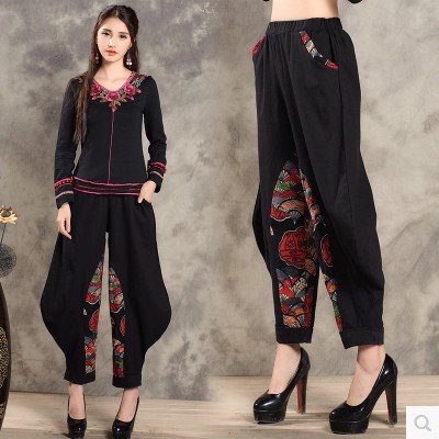 • 商品名称:秋装新款棉麻宽松休闲裤子民族风拼接文艺女裤哈伦裤 长裤