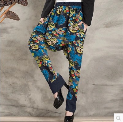 • 商品名称:秋冬民族风女装棉麻休闲裤哈伦裤女潮花色长裤 垮裤嘻哈裤