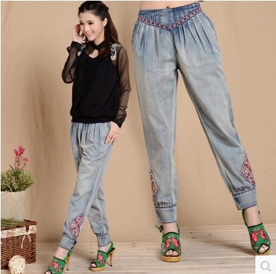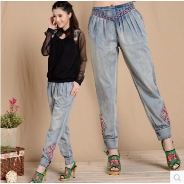• 商品名称:做旧水洗 牛仔裤 宽松 女阔腿裤 哈伦裤