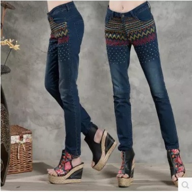 • 商品名称:民族风刺绣绣花牛仔长裤 小脚裤 棉质 弹力 牛仔裤