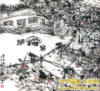 赵振川有自己的写生观与创作观。他说:“写生不仅需要尊重客观,还要会编,我的画就是在生活的基础上编出来的。”编,就是画家不依赖于对自然山水的模仿,以它为范本发挥想象力的重新创造。赵振川敢于编和善于编,是因为他一有生活,二有修养。他心中装有广阔的大自然资源和古今绘画的经典,他又善于用自己的智性与悟性去消化和融会它们。有前者,他的画始终有一股动人的勃勃生机;有后者,他的画温文尔雅、耐人寻味。